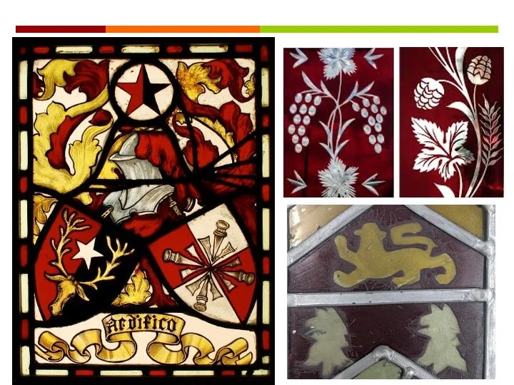 Enamels can also be used to add colour onto glass in small sections but they do not have the translucent quality of glass that the stain preserves and so, apart from a brief stint in the 17th century where Dutch roundels flourished in popularity and were heavily enameled, they are not as widely used.